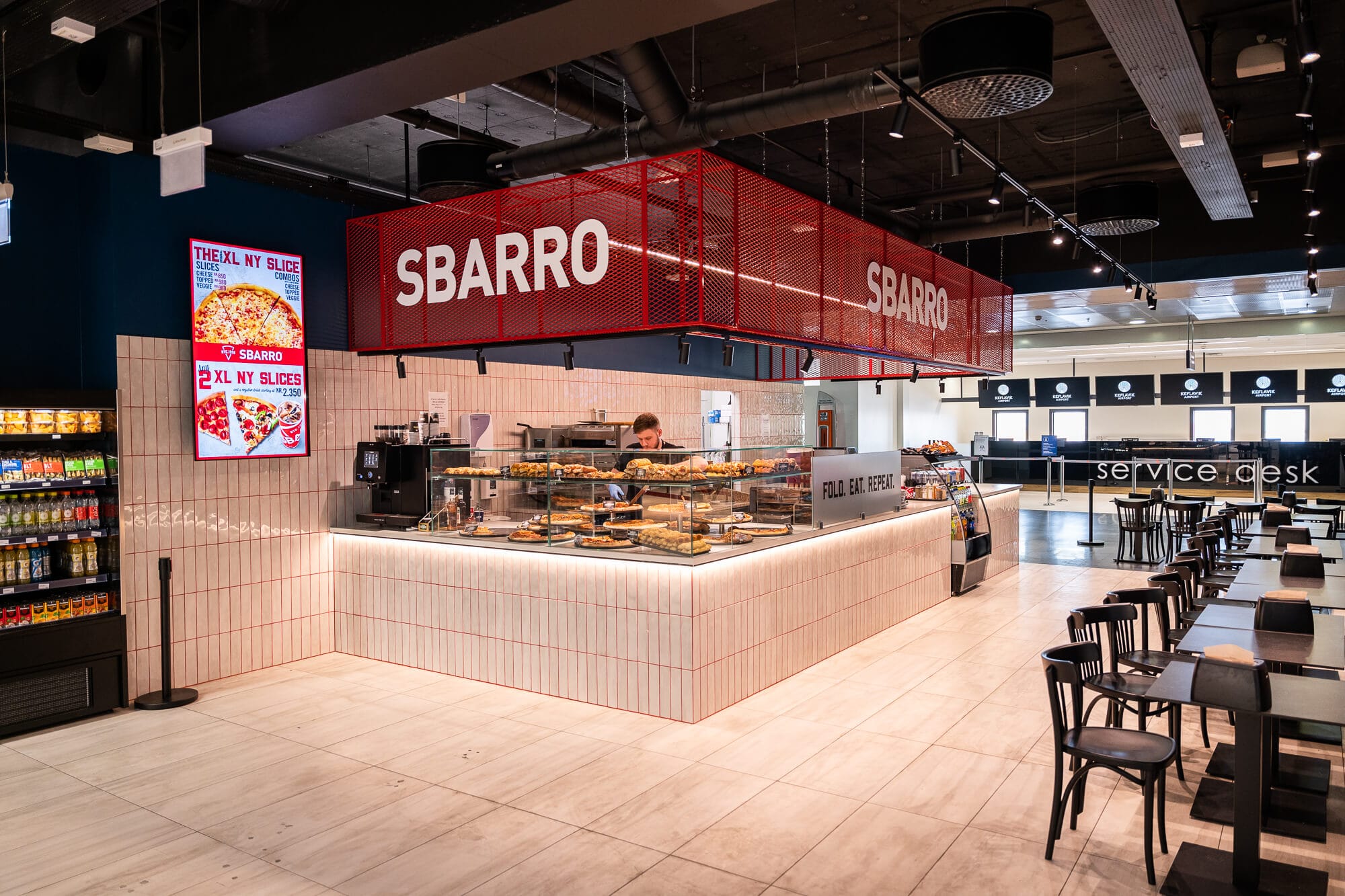Here are some highlights: Bakað: Pizzas, sandwiches, pastries, and healthy juices,Hjá Höllu: Wood oven pizza restaurant, Jómfrúin: Danish Smørrebrød, Sbarro: Freshly baked pizzas, pasta, and breakfast and many more. Remember to enjoy a meal while waiting for your flight.